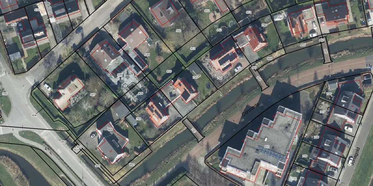 Gebruik de zoekbalk of klik op een perceel voor informatie over de adressen binnen dit perceel.