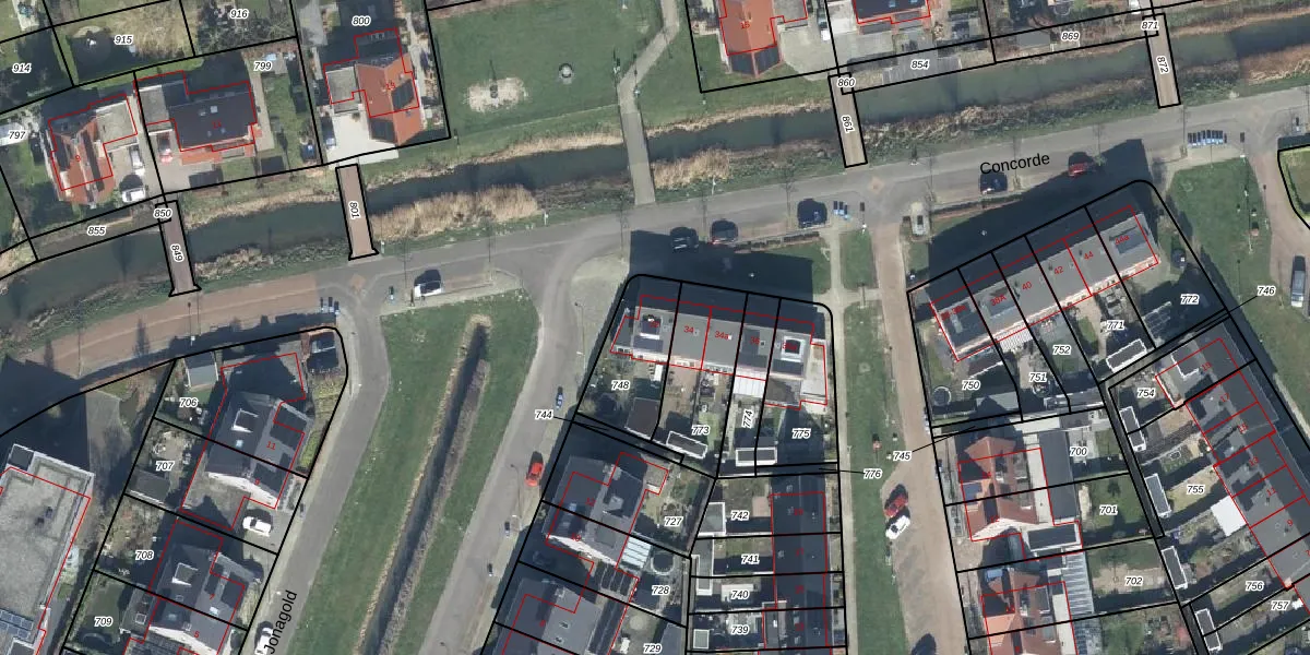 Het perceel waarop Concorde 32 staat heeft een oppervlakte van 246 m². Dit is een middelgroot perceel. De perceeloppervlakte wordt geregistreerd door het Kadaster. Gedetailleerde informatie over de maten van dit perceel kunt u vinden in het rapport Kadastrale kaart met maatvoering van Concorde 32.