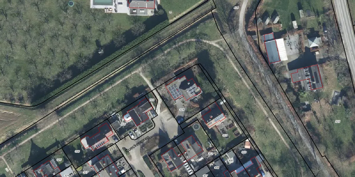 Gebruik de zoekbalk of klik op een perceel voor informatie over de adressen binnen dit perceel.