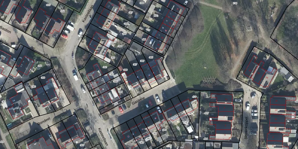 Het perceel waarop Galderie 5 staat heeft een oppervlakte van 196 m². Dit is een middelgroot perceel. De perceeloppervlakte wordt geregistreerd door het Kadaster. Gedetailleerde informatie over de maten van dit perceel kunt u vinden in het rapport Kadastrale kaart met maatvoering van Galderie 5.
