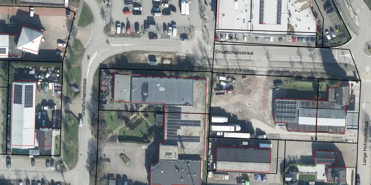 Gebruik de zoekbalk of klik op een perceel voor informatie over de adressen binnen dit perceel.