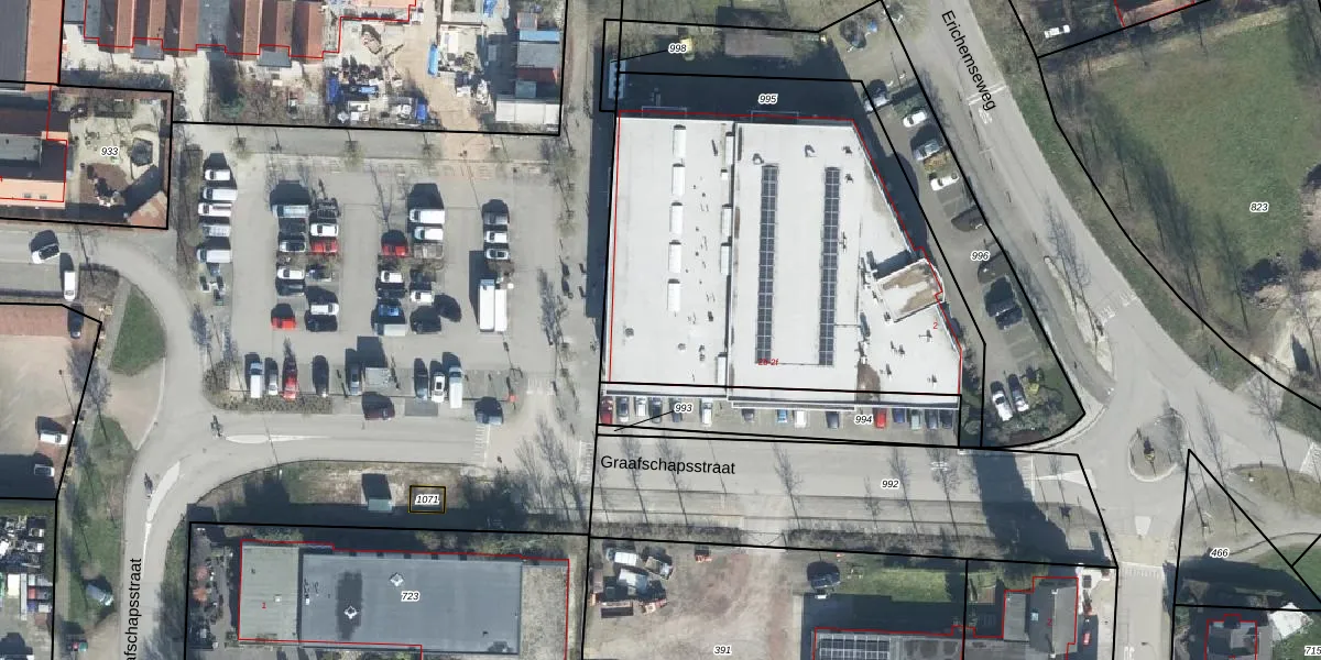 Het perceel waarop Graafschapsstraat 2-a staat heeft een oppervlakte van 2335 m². Dit is een zeer groot perceel. De perceeloppervlakte wordt geregistreerd door het Kadaster. Gedetailleerde informatie over de maten van dit perceel kunt u vinden in het rapport Kadastrale kaart met maatvoering van Graafschapsstraat 2-a.