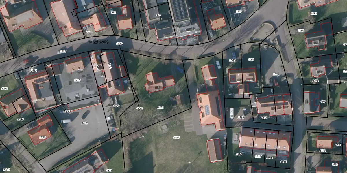Het perceel waarop Hoofdweg 6-a staat heeft een oppervlakte van 1345 m². Dit is een zeer groot perceel. De perceeloppervlakte wordt geregistreerd door het Kadaster. Gedetailleerde informatie over de maten van dit perceel kunt u vinden in het rapport Kadastrale kaart met maatvoering van Hoofdweg 6-a.