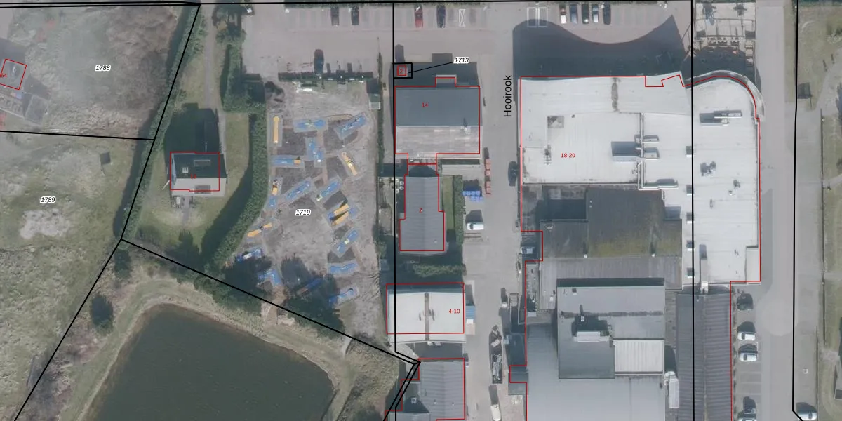 Het perceel waarop Hooirook 2 staat heeft een oppervlakte van 1,6 ha. Dit is een zeer groot perceel. De perceeloppervlakte wordt geregistreerd door het Kadaster. Gedetailleerde informatie over de maten van dit perceel kunt u vinden in het rapport Kadastrale kaart met maatvoering van Hooirook 2.