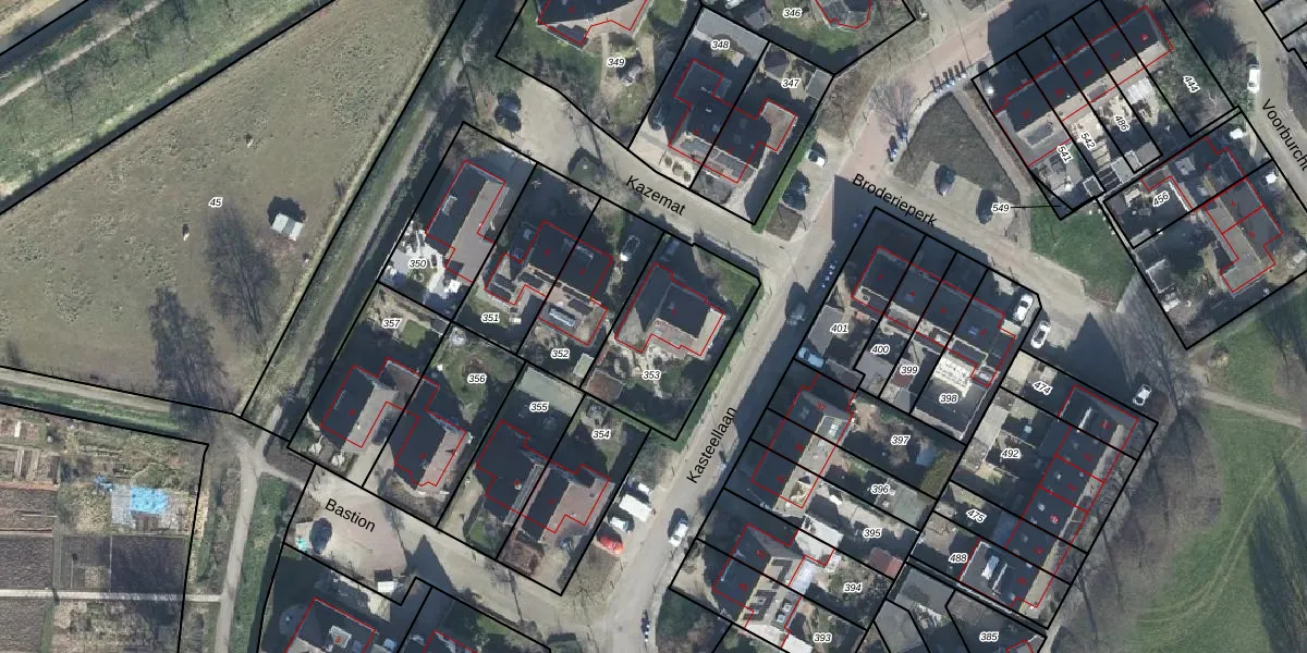 Het perceel waarop Kazemat 1 staat heeft een oppervlakte van 453 m². Dit is een groot perceel. De perceeloppervlakte wordt geregistreerd door het Kadaster. Gedetailleerde informatie over de maten van dit perceel kunt u vinden in het rapport Kadastrale kaart met maatvoering van Kazemat 1.