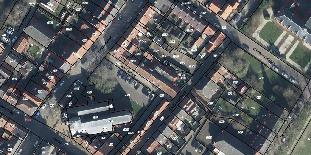 Het perceel waarop Kerkstraat 5 staat heeft een oppervlakte van 478 m². Dit is een groot perceel. De perceeloppervlakte wordt geregistreerd door het Kadaster. Gedetailleerde informatie over de maten van dit perceel kunt u vinden in het rapport Kadastrale kaart met maatvoering van Kerkstraat 5.