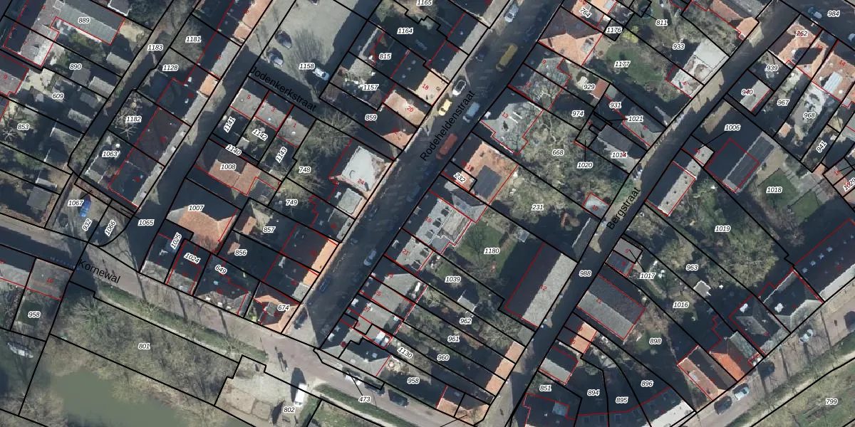 Het perceel waarop Rodeheldenstraat 19 staat heeft een oppervlakte van 647 m². Dit is een groot perceel. De perceeloppervlakte wordt geregistreerd door het Kadaster. Gedetailleerde informatie over de maten van dit perceel kunt u vinden in het rapport Kadastrale kaart met maatvoering van Rodeheldenstraat 19.
