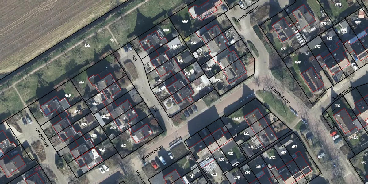 Gebruik de zoekbalk of klik op een perceel voor informatie over de adressen binnen dit perceel.