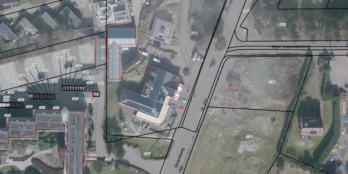 Het perceel waarop Strandweg 65 staat heeft een oppervlakte van 1,9 ha. Dit is een zeer groot perceel. De perceeloppervlakte wordt geregistreerd door het Kadaster. Gedetailleerde informatie over de maten van dit perceel kunt u vinden in het rapport Kadastrale kaart met maatvoering van Strandweg 65.