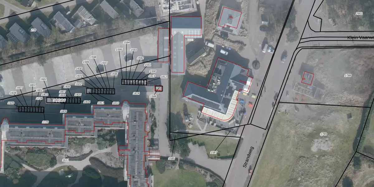Het perceel waarop Strandweg 65-a staat heeft een oppervlakte van 1,9 ha. Dit is een zeer groot perceel. De perceeloppervlakte wordt geregistreerd door het Kadaster. Gedetailleerde informatie over de maten van dit perceel kunt u vinden in het rapport Kadastrale kaart met maatvoering van Strandweg 65-a.