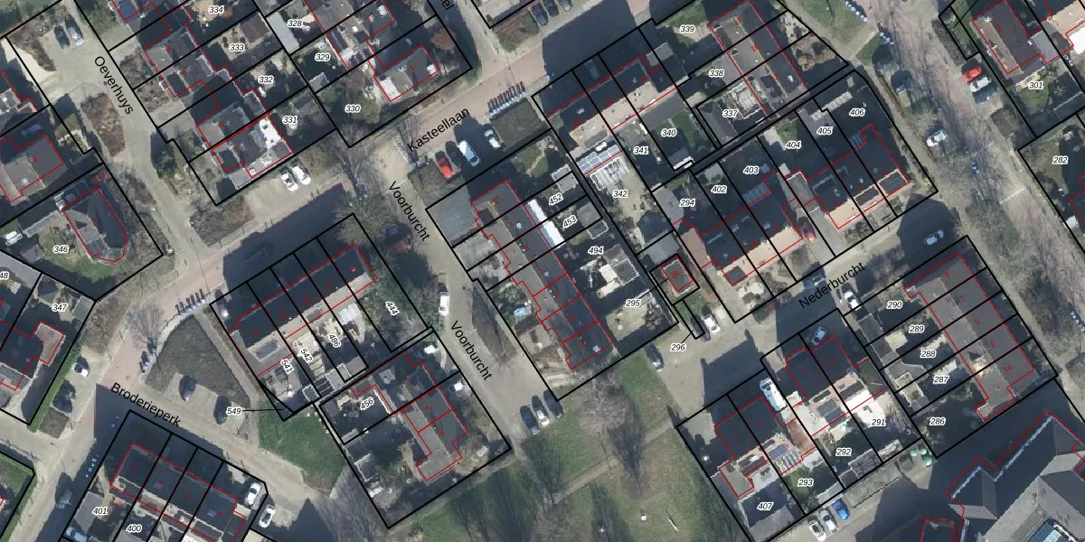 Het perceel waarop Voorburcht 7 staat heeft een oppervlakte van 896 m². Dit is een groot perceel. De perceeloppervlakte wordt geregistreerd door het Kadaster. Gedetailleerde informatie over de maten van dit perceel kunt u vinden in het rapport Kadastrale kaart met maatvoering van Voorburcht 7.
