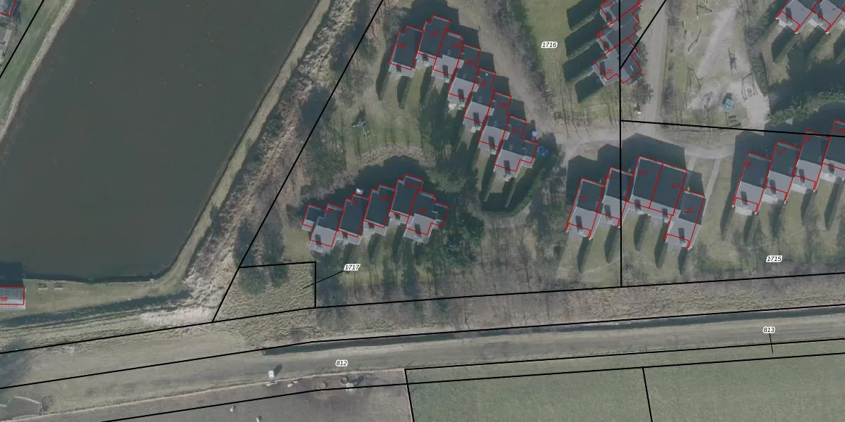 Het perceel waarop het adres ligt is NES01-D-1716. De afkorting 'NES01' staat voor kadastrale gemeente Nes Ameland. De gemiddelde perceelgrootte in Nes Ameland is 7,0 ha. Dit perceel is kleiner: de perceeloppervlakte bedraagt 7970 m². Het kleinste perceel in de kadastrale gemeente is 1 m² groot. De grootste perceeloppervlakte is 58,73 km². Er zijn 25 adressen aanwezig op het perceel. De huidige grenzen van het perceel zijn digitaal in de Basisregistratie Kadaster (BRK) geregistreerd op 08-08-2006.