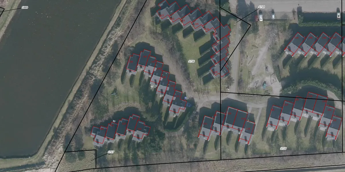 Het perceel waarop het adres ligt is NES01-D-1716. De afkorting 'NES01' staat voor kadastrale gemeente Nes Ameland. De gemiddelde perceelgrootte in Nes Ameland is 7,0 ha. Dit perceel is kleiner: de perceeloppervlakte bedraagt 7970 m². Het kleinste perceel in de kadastrale gemeente is 1 m² groot. De grootste perceeloppervlakte is 58,73 km². Op het perceel zijn 25 adressen aanwezig. De huidige grenzen van het perceel zijn digitaal in de Basisregistratie Kadaster (BRK) geregistreerd op 08-08-2006.