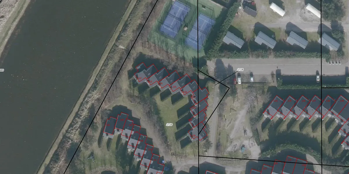 Het perceel waarop het adres ligt is NES01-D-1716. De afkorting 'NES01' staat voor kadastrale gemeente Nes Ameland. Het perceel is 7970 m² groot. Dat is kleiner dan de gemiddelde perceeloppervlakte in Nes Ameland, dat op 7,0 ha ligt. De grootste perceeloppervlakte in de kadastrale gemeente is 58,73 km². De kleinste oppervlakte bedraagt 1 m². Er zijn 25 adressen aanwezig op het perceel. De huidige grenzen van het perceel zijn digitaal in de Basisregistratie Kadaster (BRK) geregistreerd op 08-08-2006.