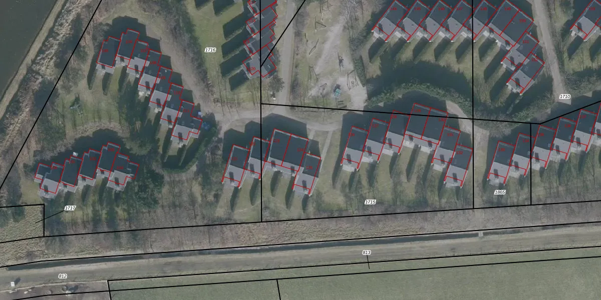 Het perceel waarop het adres ligt is NES01-D-1715. De afkorting 'NES01' staat voor kadastrale gemeente Nes Ameland. De gemiddelde perceelgrootte in Nes Ameland is 7,0 ha. Dit perceel is kleiner: de perceeloppervlakte bedraagt 2440 m². Het kleinste perceel in de kadastrale gemeente is 1 m² groot. De grootste perceeloppervlakte is 58,73 km². Op het perceel liggen in totaal 9 adressen. In de Basisregistratie Kadaster (BRK) werden de grenzen van het perceel geregistreerd op 08-08-2006.