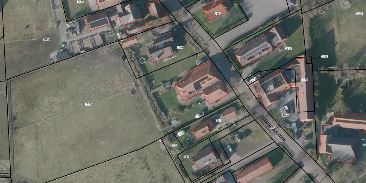 Het perceel waarop Willibrordusstraat 2-b staat heeft een oppervlakte van 6043 m². Dit is een zeer groot perceel. De perceeloppervlakte wordt geregistreerd door het Kadaster. Gedetailleerde informatie over de maten van dit perceel kunt u vinden in het rapport Kadastrale kaart met maatvoering van Willibrordusstraat 2-b.