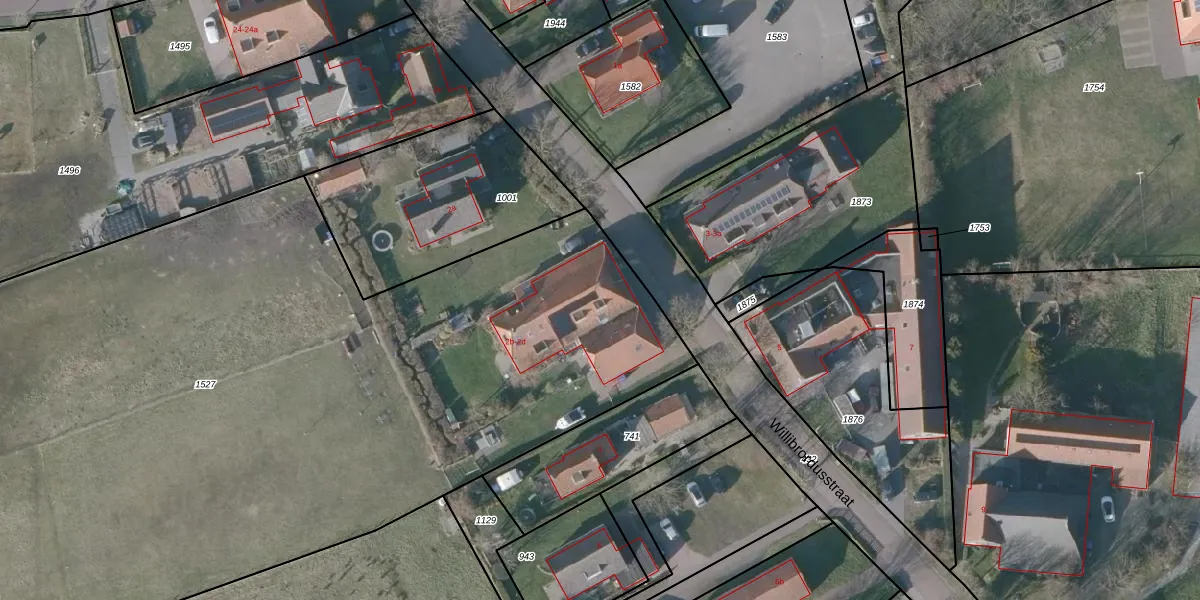 Het perceel waarop Willibrordusstraat 2-d staat heeft een oppervlakte van 6043 m². Dit is een zeer groot perceel. De perceeloppervlakte wordt geregistreerd door het Kadaster. Gedetailleerde informatie over de maten van dit perceel kunt u vinden in het rapport Kadastrale kaart met maatvoering van Willibrordusstraat 2-d.