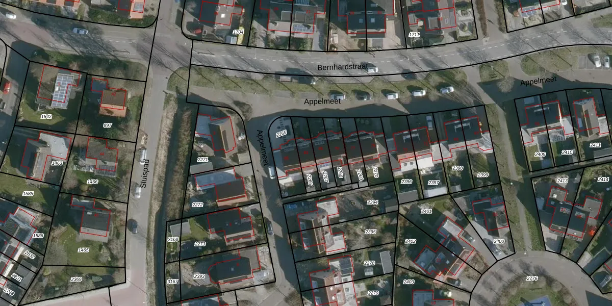 Gebruik de zoekbalk of klik op een perceel voor informatie over de adressen binnen dit perceel.