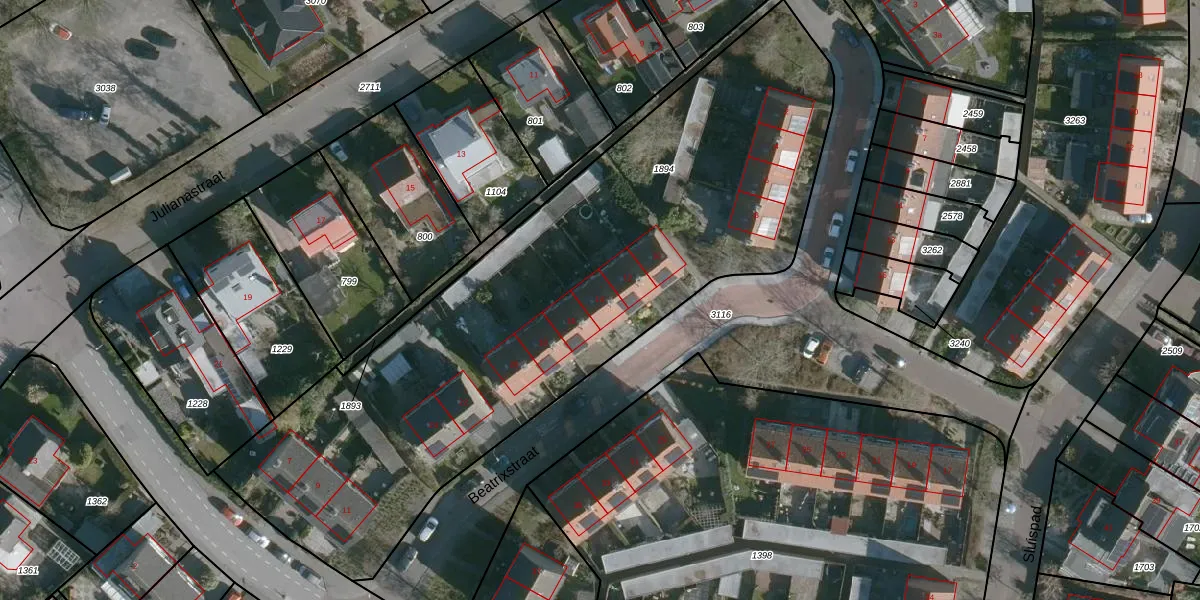Beatrixstraat 14 is gelegen op kadastraal perceel WTS00C1894. Deze kadastrale aanduiding is uniek en wordt gebruikt door het Kadaster om eigendomsrechten en andere zakelijke rechten vast te leggen. Het perceel maakt onderdeel uit van de kadastrale gemeente Westerschouwen.