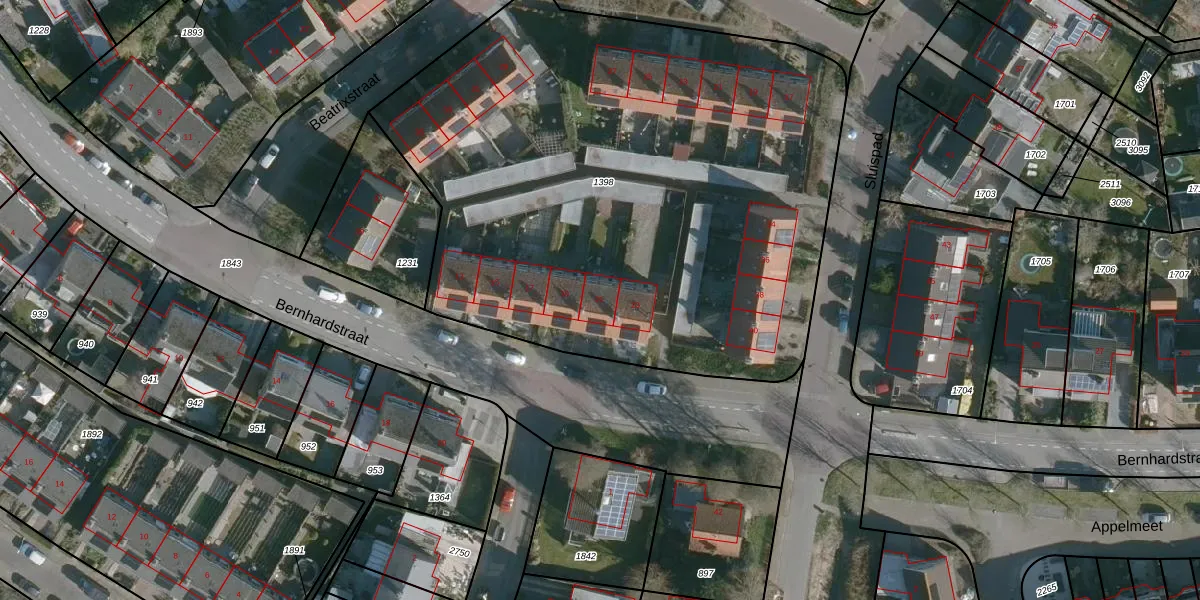 Het perceel waarop Bernhardstraat 21 staat heeft een oppervlakte van 3735 m². Dit is een zeer groot perceel. De perceeloppervlakte wordt geregistreerd door het Kadaster. Gedetailleerde informatie over de maten van dit perceel kunt u vinden in het rapport Kadastrale kaart met maatvoering van Bernhardstraat 21.