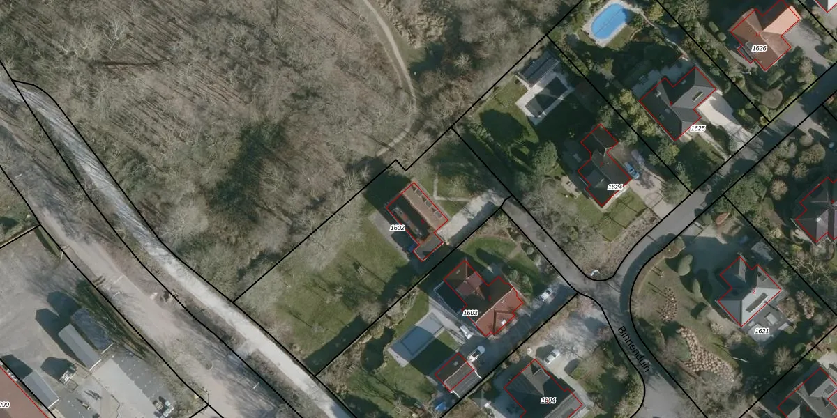 Het perceel waarop Binnenduin 5 staat heeft een oppervlakte van 1624 m². Dit is een zeer groot perceel. De perceeloppervlakte wordt geregistreerd door het Kadaster. Gedetailleerde informatie over de maten van dit perceel kunt u vinden in het rapport Kadastrale kaart met maatvoering van Binnenduin 5.