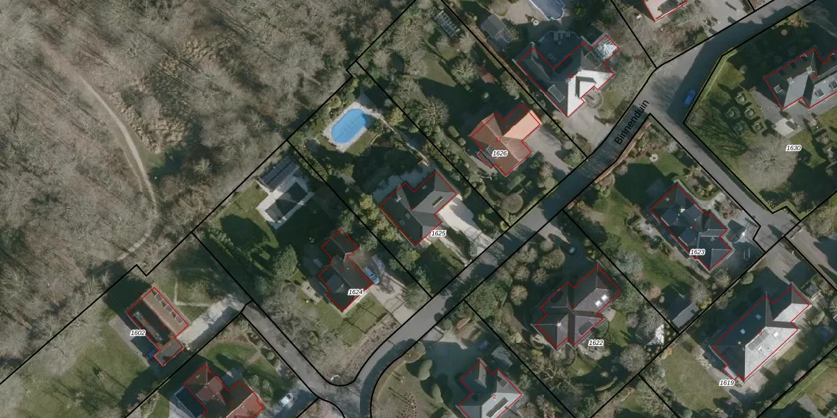Het perceel waarop Binnenduin 9 staat heeft een oppervlakte van 1309 m². Dit is een zeer groot perceel. De perceeloppervlakte wordt geregistreerd door het Kadaster. Gedetailleerde informatie over de maten van dit perceel kunt u vinden in het rapport Kadastrale kaart met maatvoering van Binnenduin 9.
