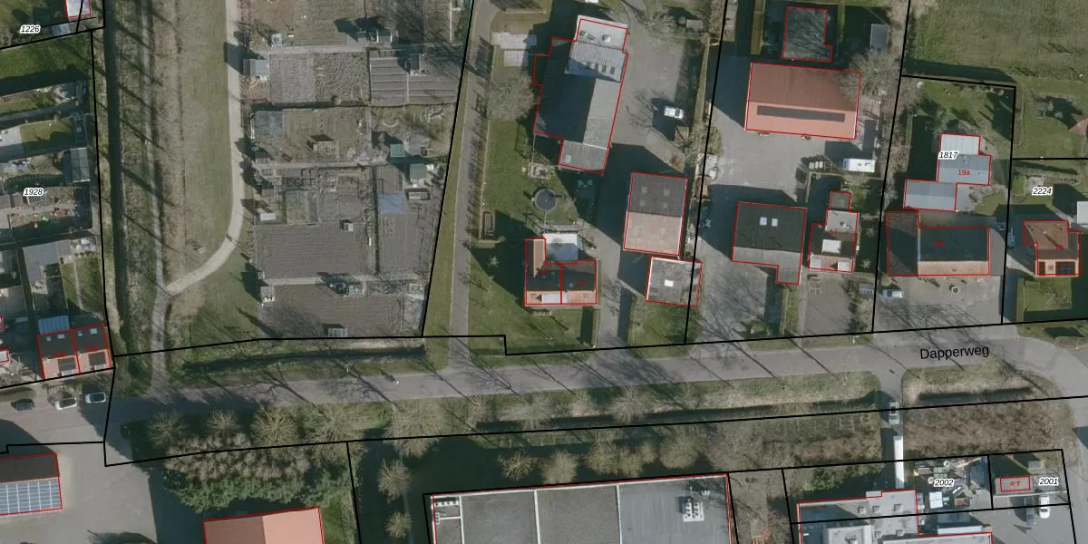 Het perceel waarop Dapperweg 15 staat heeft een oppervlakte van 8212 m². Dit is een zeer groot perceel. De perceeloppervlakte wordt geregistreerd door het Kadaster. Gedetailleerde informatie over de maten van dit perceel kunt u vinden in het rapport Kadastrale kaart met maatvoering van Dapperweg 15.