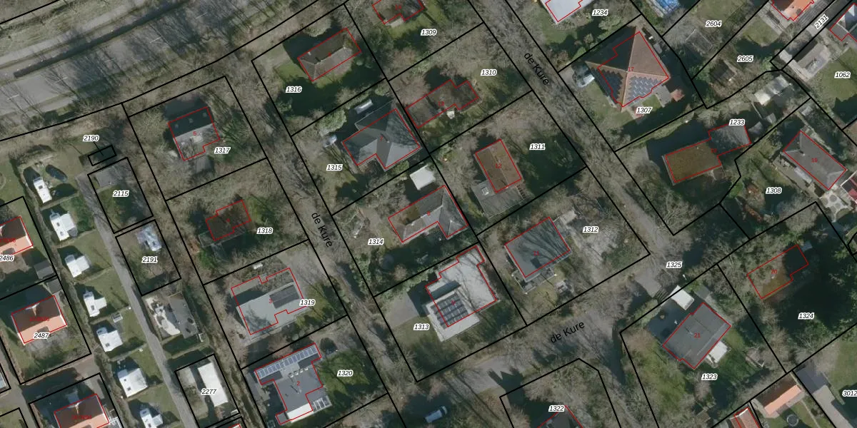 Het perceel waarop de Kure 8 staat heeft een oppervlakte van 605 m². Dit is een groot perceel. De perceeloppervlakte wordt geregistreerd door het Kadaster. Gedetailleerde informatie over de maten van dit perceel kunt u vinden in het rapport Kadastrale kaart met maatvoering van de Kure 8.
