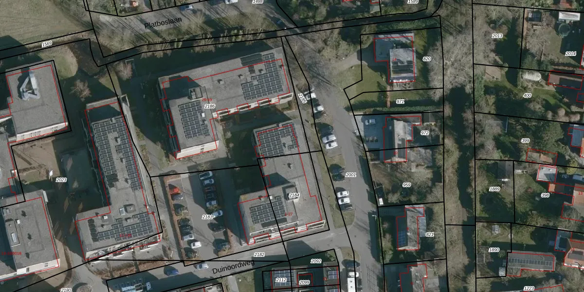 Het perceel waarop Duinoordweg 1 staat heeft een oppervlakte van 2467 m². Dit is een zeer groot perceel. De perceeloppervlakte wordt geregistreerd door het Kadaster. Gedetailleerde informatie over de maten van dit perceel kunt u vinden in het rapport Kadastrale kaart met maatvoering van Duinoordweg 1.