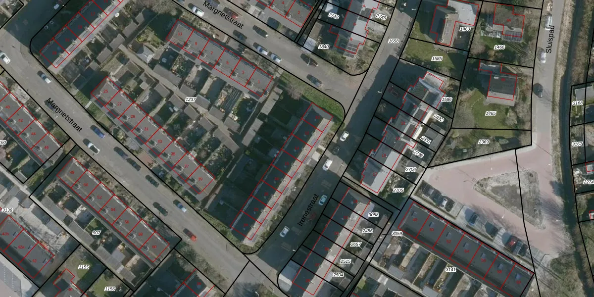 Het perceel waarop Irenestraat 14 staat heeft een oppervlakte van 5125 m². Dit is een zeer groot perceel. De perceeloppervlakte wordt geregistreerd door het Kadaster. Gedetailleerde informatie over de maten van dit perceel kunt u vinden in het rapport Kadastrale kaart met maatvoering van Irenestraat 14.