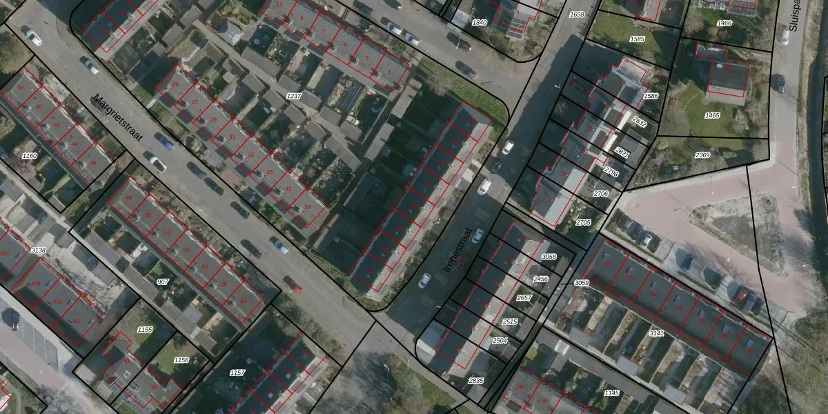 Het perceel waarop Irenestraat 18 staat heeft een oppervlakte van 5125 m². Dit is een zeer groot perceel. De perceeloppervlakte wordt geregistreerd door het Kadaster. Gedetailleerde informatie over de maten van dit perceel kunt u vinden in het rapport Kadastrale kaart met maatvoering van Irenestraat 18.