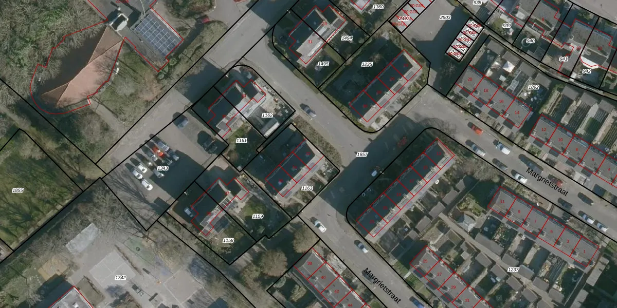 Het perceel waarop Margrietstraat 32 staat heeft een oppervlakte van 503 m². Dit is een groot perceel. De perceeloppervlakte wordt geregistreerd door het Kadaster. Gedetailleerde informatie over de maten van dit perceel kunt u vinden in het rapport Kadastrale kaart met maatvoering van Margrietstraat 32.