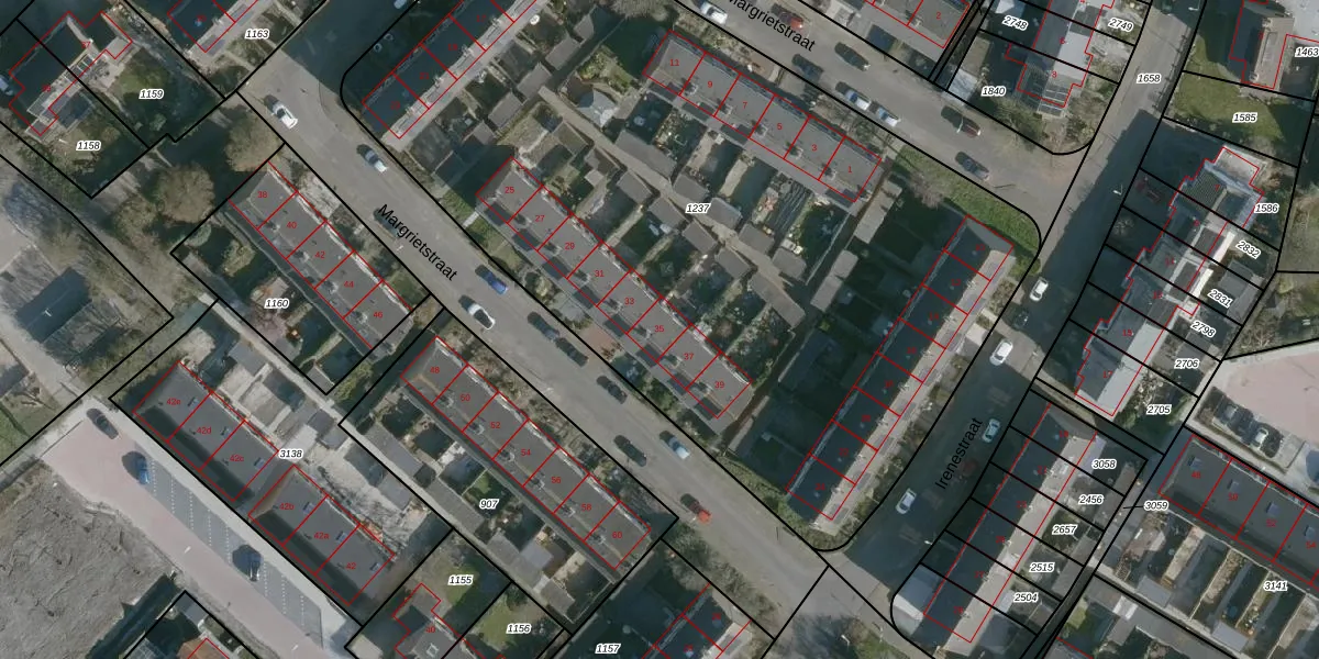 Het perceel waarop Margrietstraat 35 staat heeft een oppervlakte van 5125 m². Dit is een zeer groot perceel. De perceeloppervlakte wordt geregistreerd door het Kadaster. Gedetailleerde informatie over de maten van dit perceel kunt u vinden in het rapport Kadastrale kaart met maatvoering van Margrietstraat 35.