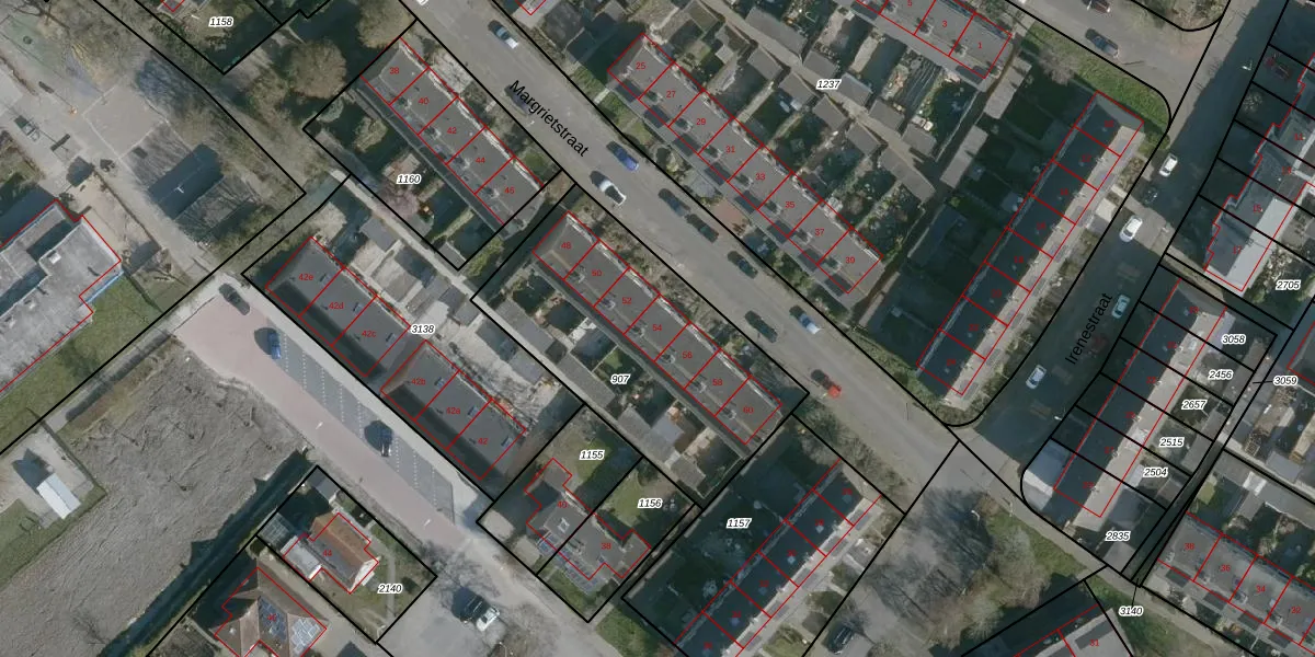 Margrietstraat 54 is gelegen op kadastraal perceel WTS00E907. Deze kadastrale aanduiding is uniek en wordt gebruikt door het Kadaster om eigendomsrechten en andere zakelijke rechten vast te leggen. Het perceel maakt onderdeel uit van de kadastrale gemeente Westerschouwen.