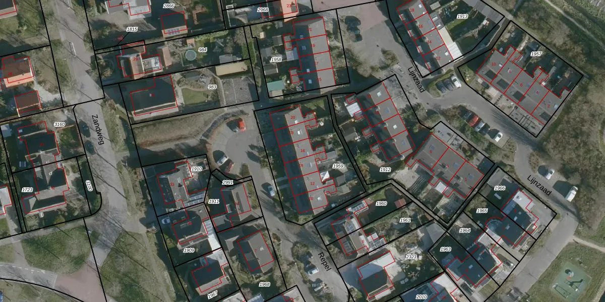 Het perceel waarop Repel 16 staat heeft een oppervlakte van 960 m². Dit is een groot perceel. De perceeloppervlakte wordt geregistreerd door het Kadaster. Gedetailleerde informatie over de maten van dit perceel kunt u vinden in het rapport Kadastrale kaart met maatvoering van Repel 16.
