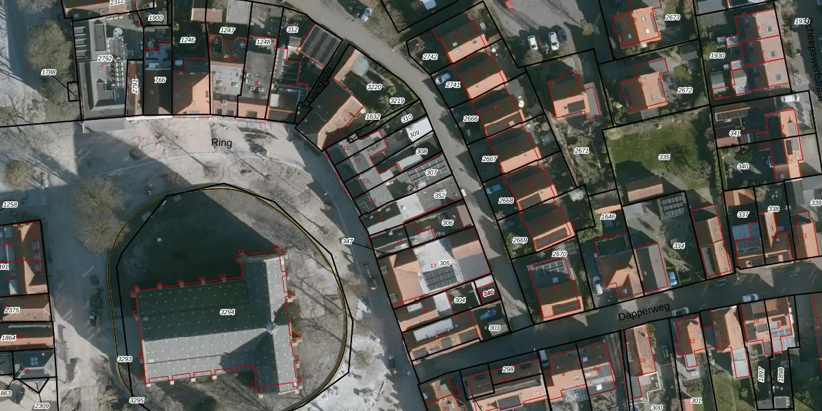 Het perceel waarop Ring 15 staat heeft een oppervlakte van 150 m². Dit is een middelgroot perceel. De perceeloppervlakte wordt geregistreerd door het Kadaster. Gedetailleerde informatie over de maten van dit perceel kunt u vinden in het rapport Kadastrale kaart met maatvoering van Ring 15.