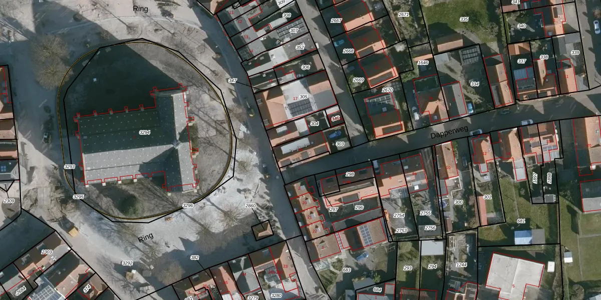 Het perceel waarop Ring 19 staat heeft een oppervlakte van 196 m². Dit is een middelgroot perceel. De perceeloppervlakte wordt geregistreerd door het Kadaster. Gedetailleerde informatie over de maten van dit perceel kunt u vinden in het rapport Kadastrale kaart met maatvoering van Ring 19.
