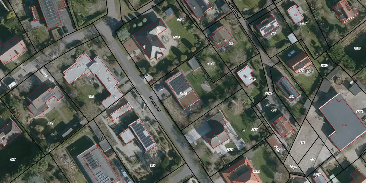 Het perceel waarop Rooiedal 34 staat heeft een oppervlakte van 1012 m². Dit is een zeer groot perceel. De perceeloppervlakte wordt geregistreerd door het Kadaster. Gedetailleerde informatie over de maten van dit perceel kunt u vinden in het rapport Kadastrale kaart met maatvoering van Rooiedal 34.