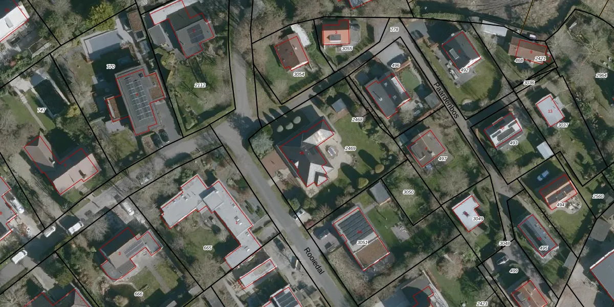 Het perceel waarop Rooiedal 36 staat heeft een oppervlakte van 1344 m². Dit is een zeer groot perceel. De perceeloppervlakte wordt geregistreerd door het Kadaster. Gedetailleerde informatie over de maten van dit perceel kunt u vinden in het rapport Kadastrale kaart met maatvoering van Rooiedal 36.