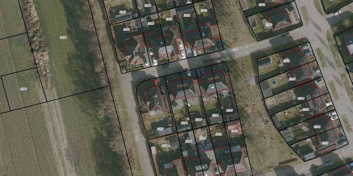 Het perceel waarop Einekroas 14 staat heeft een oppervlakte van 299 m². Dit is een middelgroot perceel. De perceeloppervlakte wordt geregistreerd door het Kadaster. Gedetailleerde informatie over de maten van dit perceel kunt u vinden in het rapport Kadastrale kaart met maatvoering van Einekroas 14.