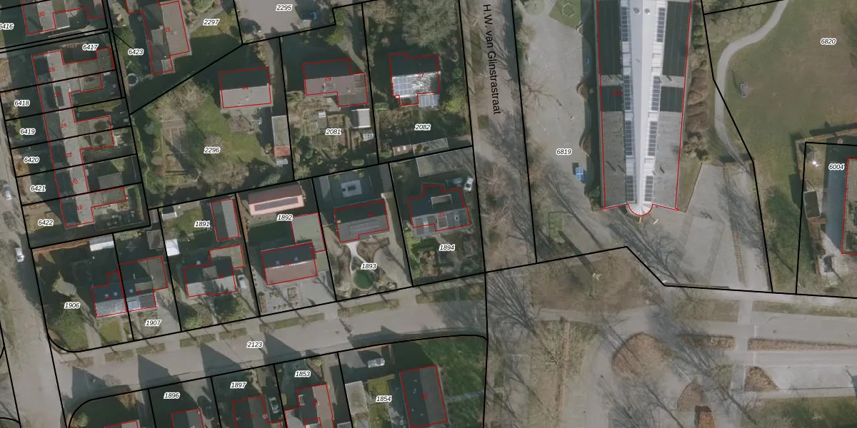 Gebruik de zoekbalk of klik op een perceel voor informatie over de adressen binnen dit perceel.