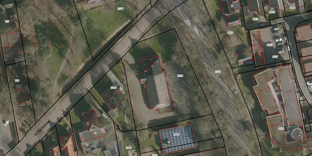 Het perceel waarop Schoolstraat 102 staat heeft een oppervlakte van 2451 m². Dit is een zeer groot perceel. De perceeloppervlakte wordt geregistreerd door het Kadaster. Gedetailleerde informatie over de maten van dit perceel kunt u vinden in het rapport Kadastrale kaart met maatvoering van Schoolstraat 102.