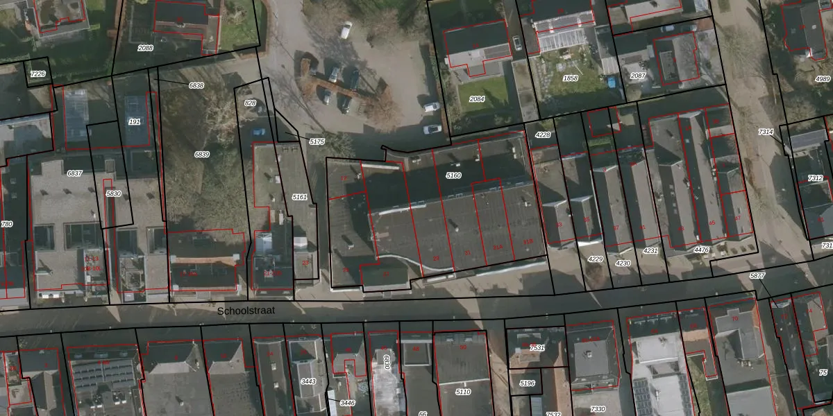 Schoolstraat 29 is gelegen op kadastraal perceel BGM02G5160. Deze kadastrale aanduiding is uniek en wordt gebruikt door het Kadaster om eigendomsrechten en andere zakelijke rechten vast te leggen. Het perceel maakt onderdeel uit van de kadastrale gemeente Bergum.