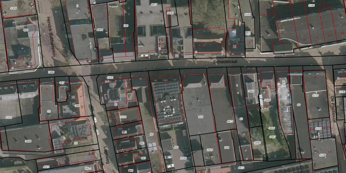 Het perceel waarop Schoolstraat 4-8 staat heeft een oppervlakte van 994 m². Dit is een groot perceel. De perceeloppervlakte wordt geregistreerd door het Kadaster. Gedetailleerde informatie over de maten van dit perceel kunt u vinden in het rapport Kadastrale kaart met maatvoering van Schoolstraat 4-8.
