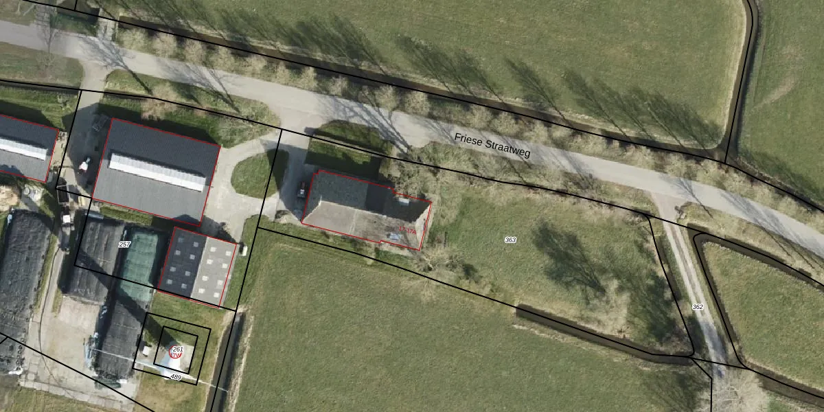 Het perceel waarop Friese Straatweg 17 staat heeft een oppervlakte van 2810 m². Dit is een zeer groot perceel. De perceeloppervlakte wordt geregistreerd door het Kadaster. Gedetailleerde informatie over de maten van dit perceel kunt u vinden in het rapport Kadastrale kaart met maatvoering van Friese Straatweg 17.