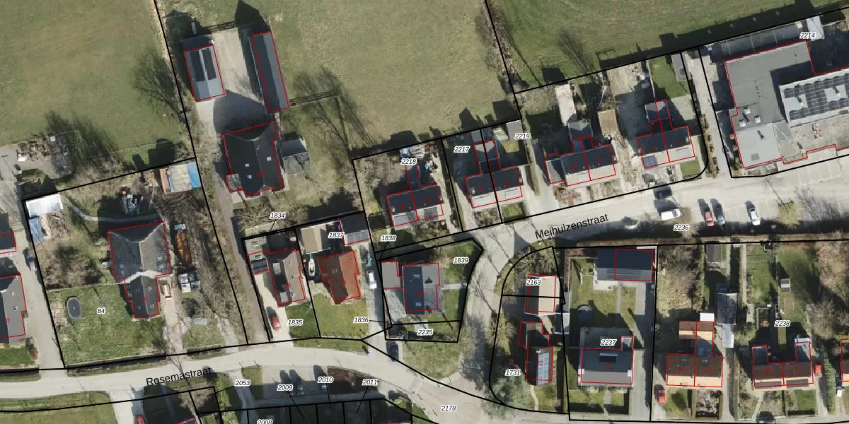 Het perceel waarop Meihuizenstraat 16 staat heeft een oppervlakte van 485 m². Dit is een groot perceel. De perceeloppervlakte wordt geregistreerd door het Kadaster. Gedetailleerde informatie over de maten van dit perceel kunt u vinden in het rapport Kadastrale kaart met maatvoering van Meihuizenstraat 16.