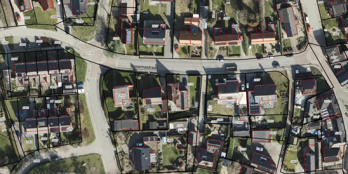 Rosemastraat 9 is gelegen op kadastraal perceel BRM02C2114. Deze kadastrale aanduiding is uniek en wordt gebruikt door het Kadaster om eigendomsrechten en andere zakelijke rechten vast te leggen. Het perceel maakt onderdeel uit van de kadastrale gemeente Burum.