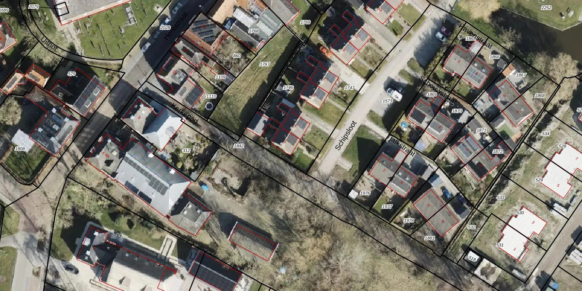 Het perceel waarop Schipsloot 1 staat heeft een oppervlakte van 1902 m². Dit is een zeer groot perceel. De perceeloppervlakte wordt geregistreerd door het Kadaster. Gedetailleerde informatie over de maten van dit perceel kunt u vinden in het rapport Kadastrale kaart met maatvoering van Schipsloot 1.
