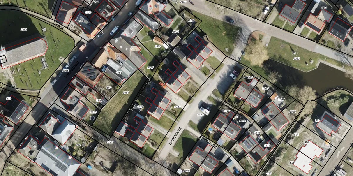 Het perceel waarop Schipsloot 9 staat heeft een oppervlakte van 1902 m². Dit is een zeer groot perceel. De perceeloppervlakte wordt geregistreerd door het Kadaster. Gedetailleerde informatie over de maten van dit perceel kunt u vinden in het rapport Kadastrale kaart met maatvoering van Schipsloot 9.
