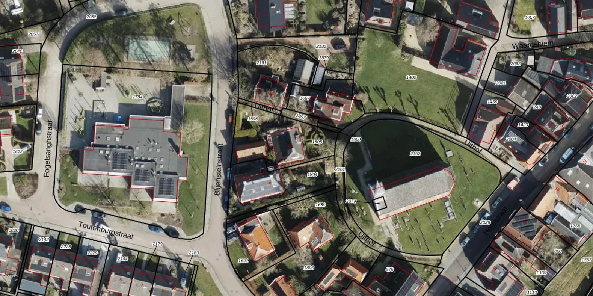 Gebruik de zoekbalk of klik op een perceel voor informatie over de adressen binnen dit perceel.